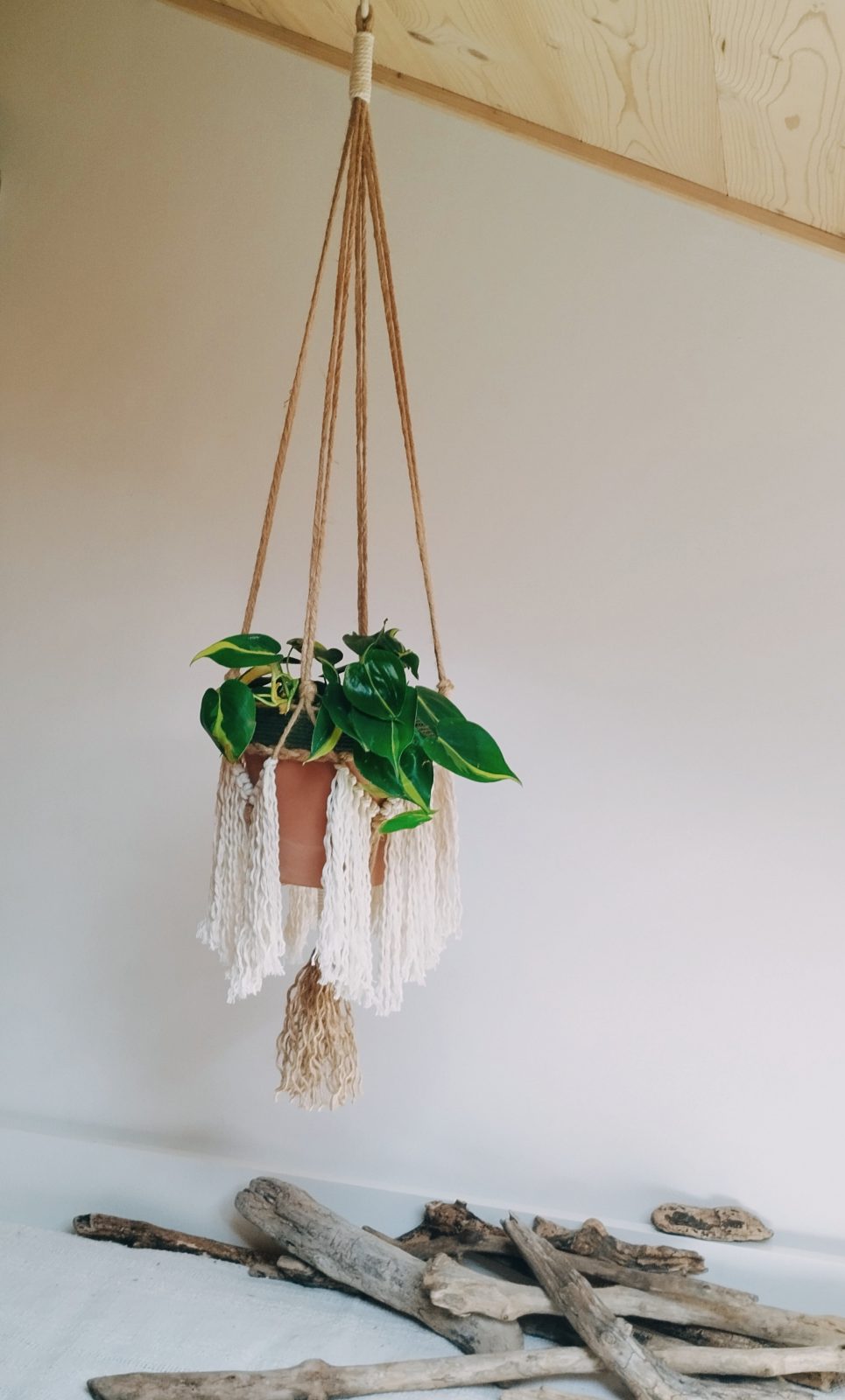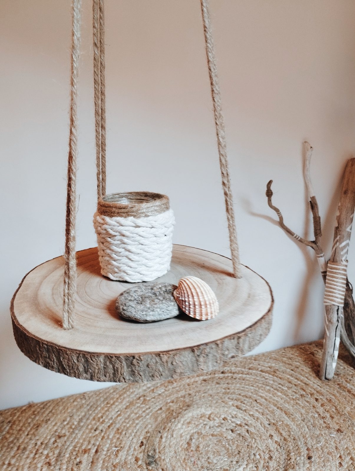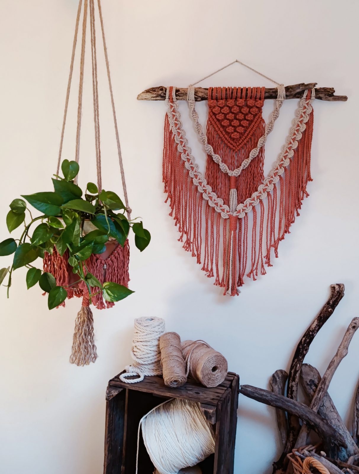 She tries, as far as possible, to combine a strong ecological conscience with her activity, using ropes made from recycled, OEKO-TEX-certified European cotton & driftwood collected during walks in the Oisans. She avoids waste as much as possible, using upcycling techniques in her creations and reusing old objects to embellish them, for example.
